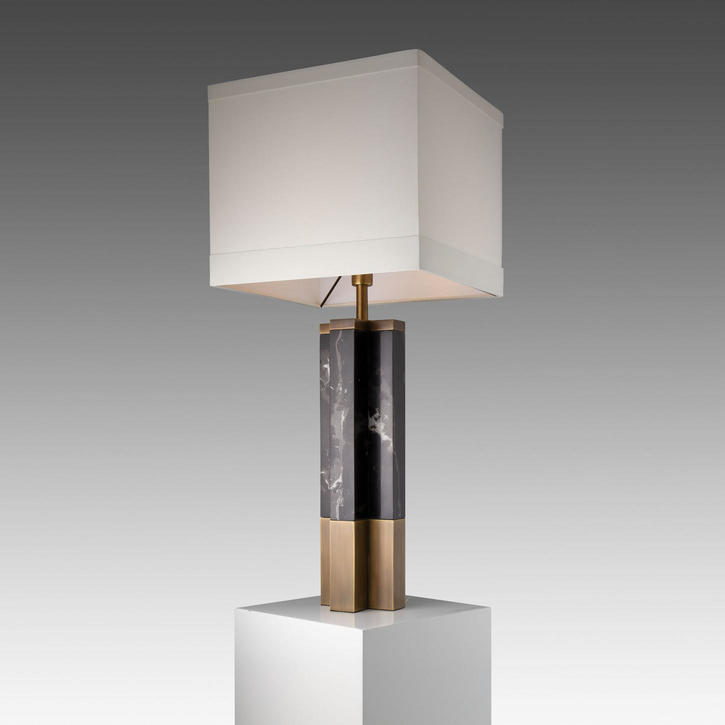Black Marble Block & Brass Rod ''Lindau'' Table Lamp