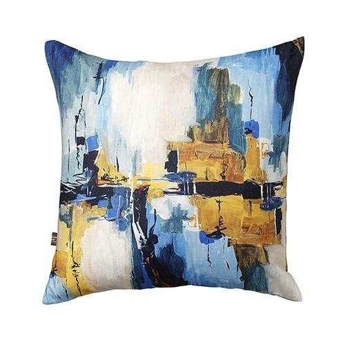 Square Blue & Ochre ''Solas'' Cushion with Abstract Design