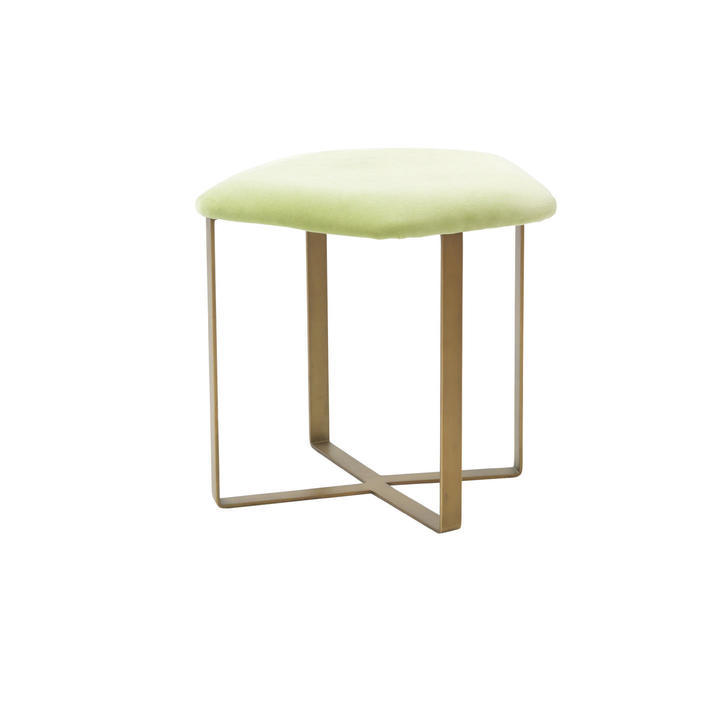 Gold Based ''Efren'' Stool with Lime Green Velvet Seat