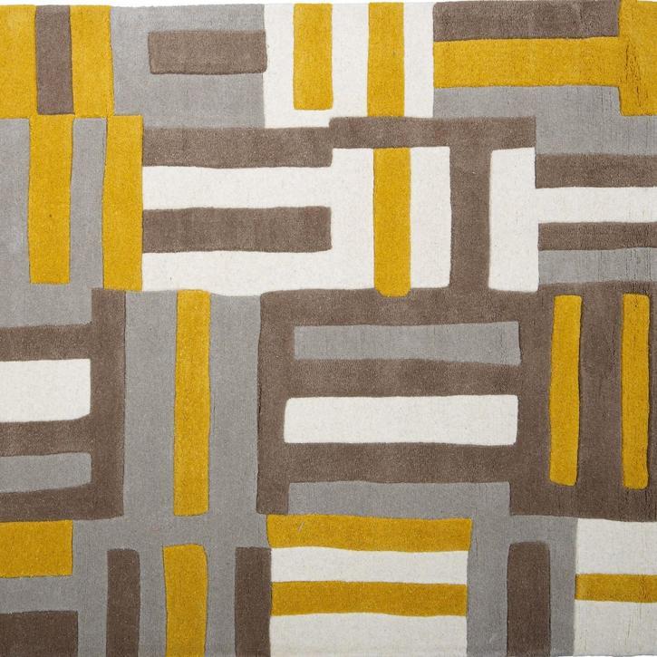 Yellow, Brown, Grey & Cream ''Matrix'' Wool Rug